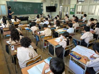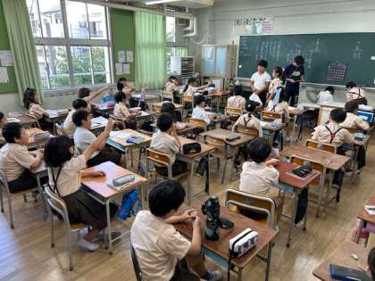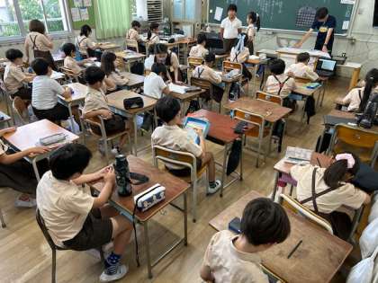 先生から今日の予定を聞いて明日のスポーツデーへの意欲が高まっています。