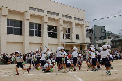 入場時に表現運動を取り入れ、一人一人の個性をアピールでしました。応援席からも温かな声掛けや声援を受けて楽しく活動することができました。