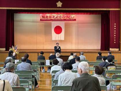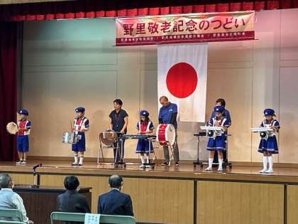 祝賀会の前には、鼓笛隊の演奏がありました。ご来賓からのお祝いの言葉の後には、8名の代表児童によるメッセージを伝えました。