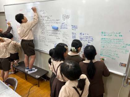 家庭科「エプロン」は、ついに仕上がりました。お互いの良さについてコメントを書いています。
