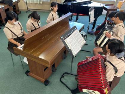 音楽「キリマンジャロ」は、パートに分かれて合奏の練習に取り組んでいます。