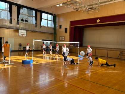 屋外運動クラブはキックベースで試合を楽しんでいます。