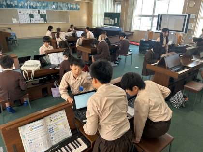 音楽「雨のうた」は和音の響きの移り変わりや音の重なりを感じながら旋律を作っています。