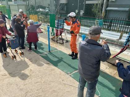 「ロープ結束」は、簡単に強い結び方を教えていただきました。
