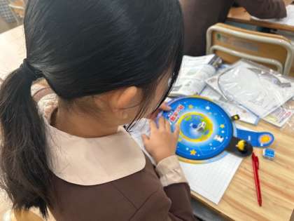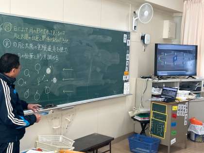 理科「月と太陽」は、観察教材を使って見え方を確かめました。