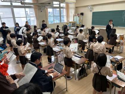 子どもたちは、緊張しながらも一生懸命に考えて発表したりまとめたりしました。