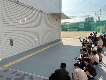 理科「光の性質」では、鏡を使って太陽光を反射させて光の通り道を確かめました。