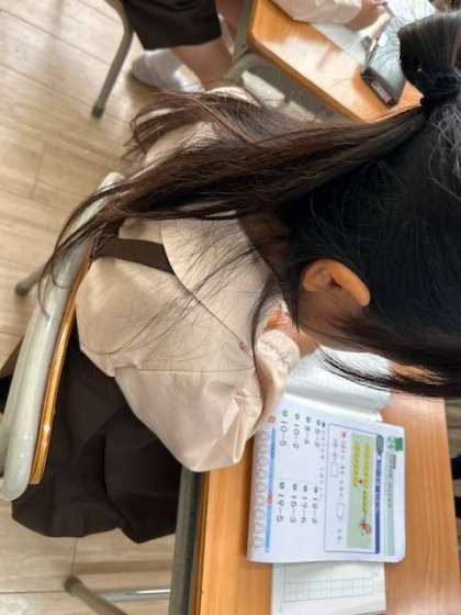 算数は引き算の復習をしています。繰り下がりのある引き算を計算ドリルやプリントの問題を解いて定着を図ります。