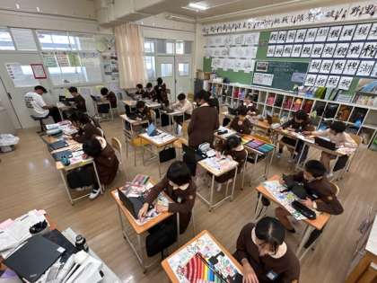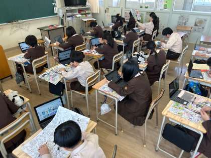 図工「ウーバーメンシュ」を仕上げていきます。小学校最後の作品展は、一生懸命に心を込めて完成させます。