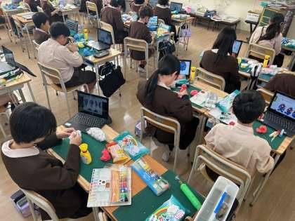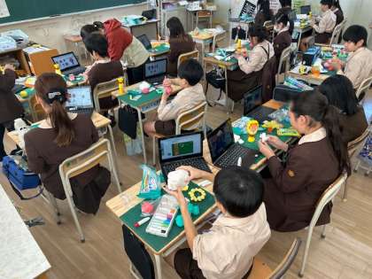図工は立体作品に取り組んでいます。作品展を楽しみにしてください。