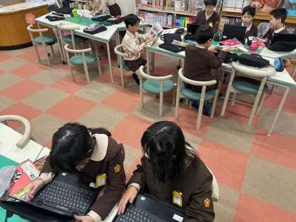 国語「道具のひみつを調べよう」では、図書館で本をよんだりタブレットで調べたりしながらまとめていきます。