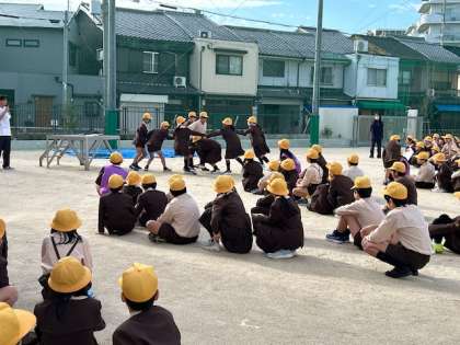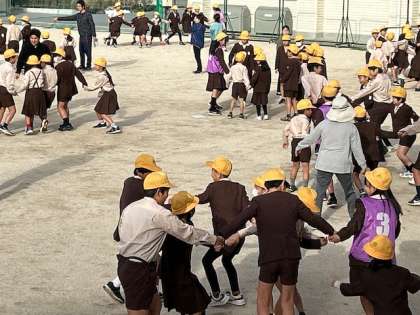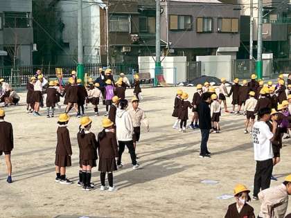 児童集会は「じゃまおに」をしました。たてわり班で手を繋いで鬼から王様を守りま