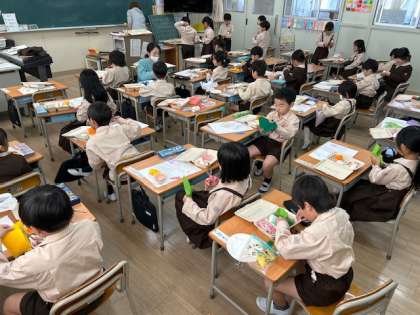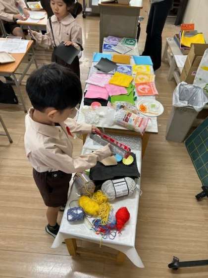 図工「おべんとう」は、材料を活かして大好きなお弁当を作っています。作品展が楽しみです。
