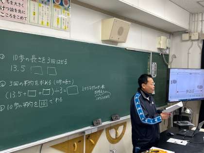 算数「平均」は、自分の歩幅を平均で求めました。それを元に北校舎1階の廊下の長さを予測します。結果は…?