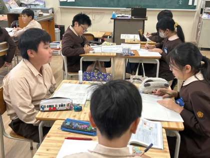 国語「話し言葉と書き言葉」では、班でそれぞれのメリットとデメリットについて意見交換をしています。