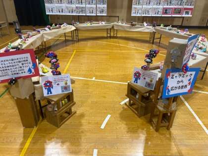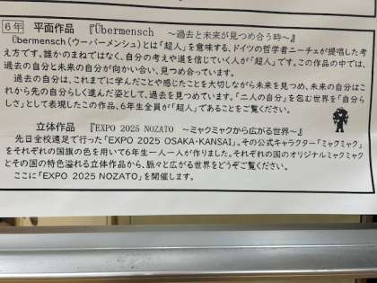 オリジナルミャクミャクをリングに載せて野里ワールドを「過去と未来が見つめ合う時」を平面で表現しました。