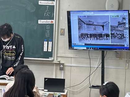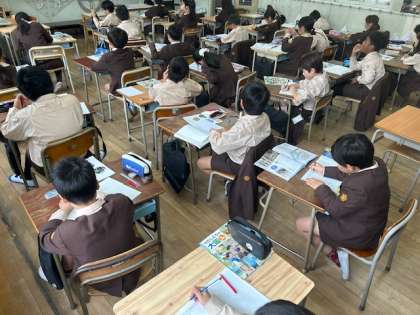 明日の社会見学の前に、写真や年表を見て移り変わりを調べていきます。