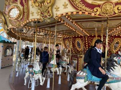 絶叫マシンが苦手な友達は、メリーゴーランドやシューティングライドを楽しんでいます。