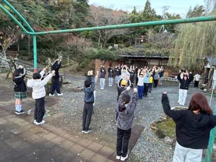 快適な部屋でしっかり睡眠をとりました。6:00には目を覚まし7:00に朝の集いでラジオ体操で体を起こしました。