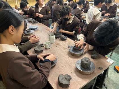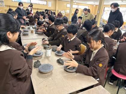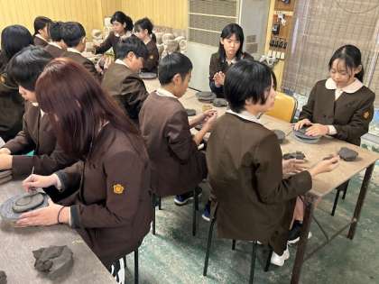 修学旅行の記念に陶芸作品を作っています。土に無心に向き合っています。