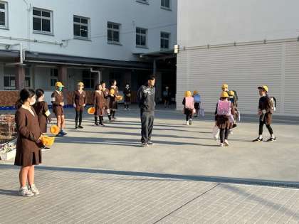 挨拶ボランティアは今朝も爽やかな挨拶で迎えてくれます。