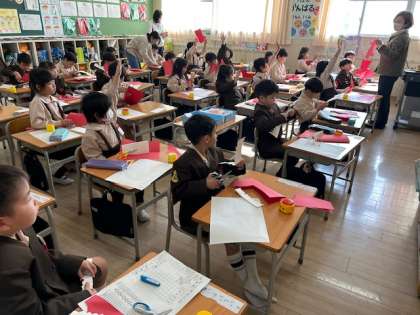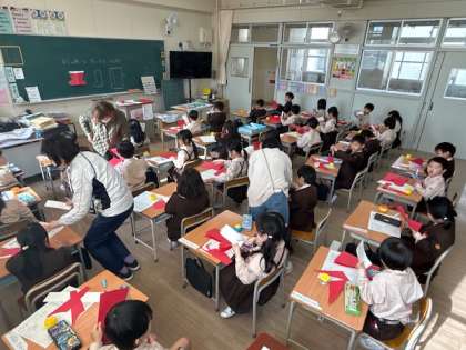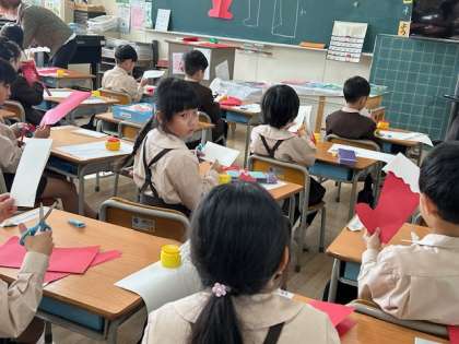 図工「おしゃれなブーツを作ろう」は、サンタさんのブーツを作っています。