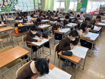 学級休業明けに気持ちを切り替えてテストに真剣に取り組んでいます。