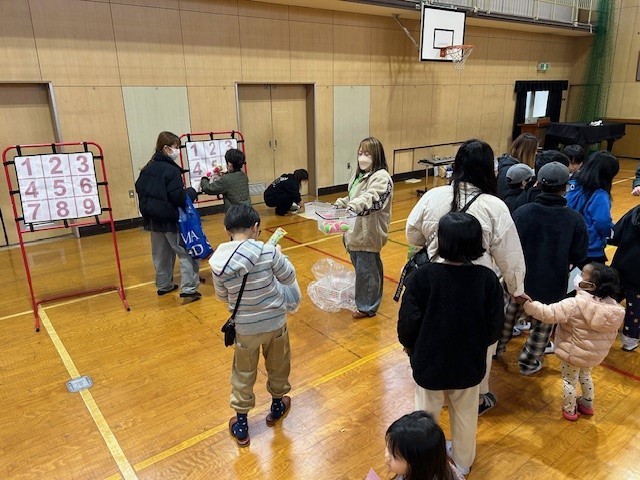 地域の皆様や区役所のご協力で「昔遊び・バルーンアート・ストラックアウト・千本引き」を講堂で楽しんでいます。