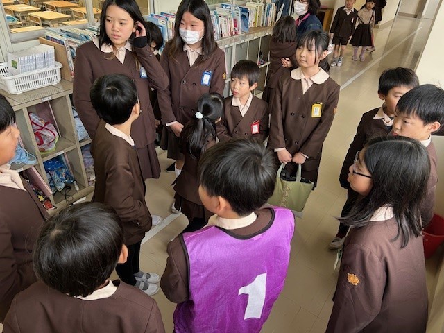 今年度最後のたてわり班清掃です。小雪の舞う寒さの中、協力して校内を綺麗にしています。この班での掃除は最後になるので心を込めて活動しました。