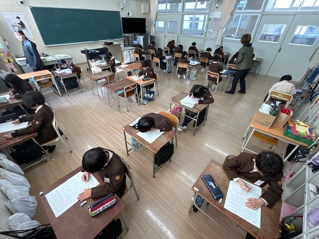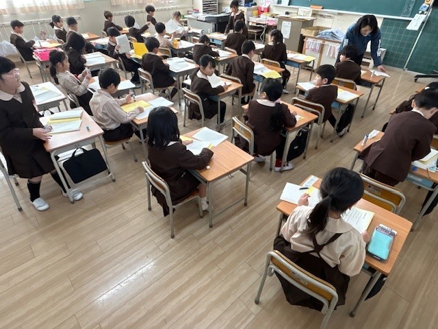 6年は算数のまとめの単元テストをしました。席替え後に気分を一新して取り組みました。