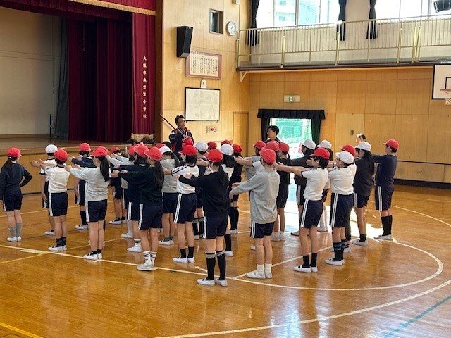 6年体育「集団行動」は、歌島中学校の体育の先生に授業をしていただきました。