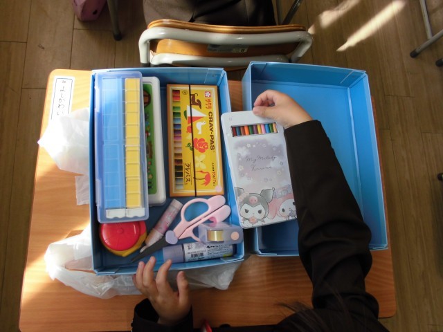 1年 お道具箱、中身の確認