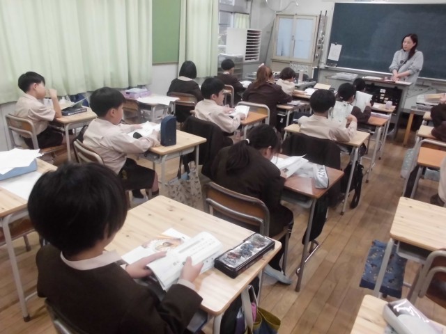 3年生は国語科の時間、まず目次のページを開いて、国語科1年間の学習の見通しをもっていました。どんな物語が載っているのかを調べていました。次に、国語学習の進め方・国語ノートの作り方・デジタルノートの作り方も確認していました。