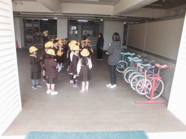 1年生は、運動場での遊び方を学んでいました。まずは、ピロティに設置されている竹馬や一輪車の使い方の説明がありました。次に、鉄棒での遊び方や運動場で遊ぶときのルールについても説明がありました。安全に気を付けながら、楽しく仲よく遊んでほしいです。