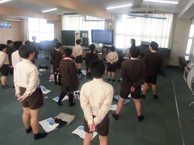 6年2組は音楽科「翼をください」を学習していました。全員で歌い終わった後、近くの人と良かったところを交流していました。「姿勢がよかった」「きれいなこえだった」「クレッシェンド、デクレッシェンドができていた」「リズムと音があっていた」などの意見が出ました。
