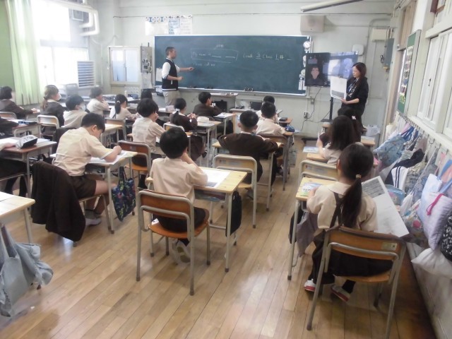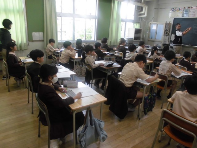 3年生は外国語活動の時間、C-NETのケリー・シェイン先生の自己紹介と質問コーナーから始まりました。