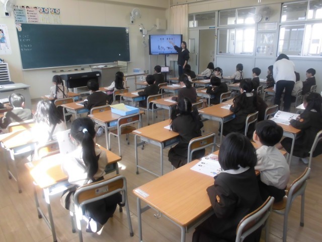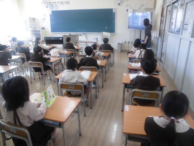1年生の教室から、「ありのこ あちこち あいうえお いしころ ころころ……」という元気な声が聴こえてきました。国語科「あいうえおの うた」を全員で音読していました。1年生児童のやる気を感じました。