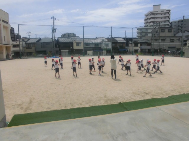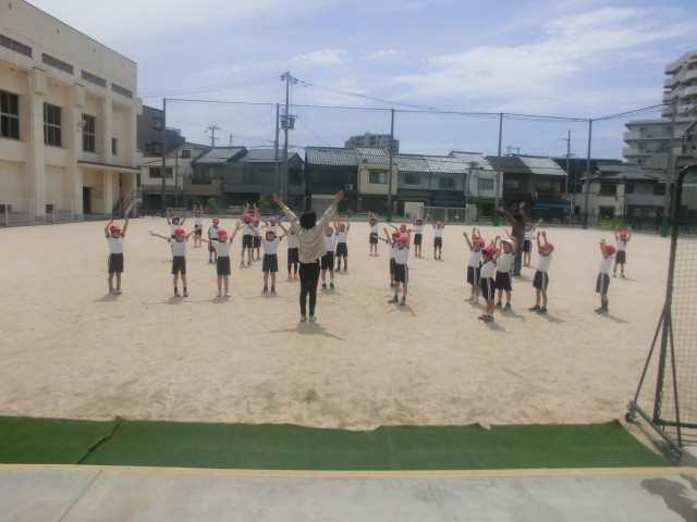 次は準備体操です。先生を見て同じ動きができたでしょうか。