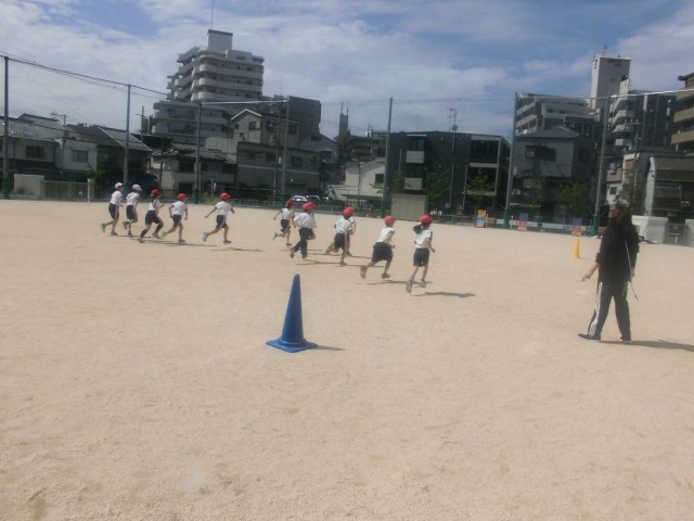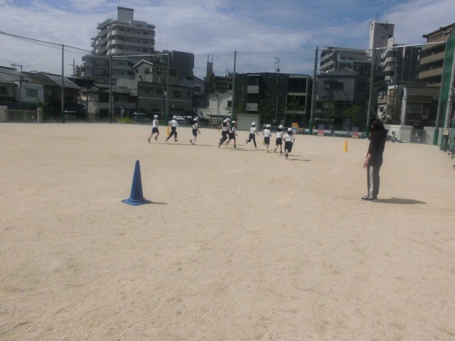 3年生は体育科の時間に、20mシャトルランに向けて練習をしていました。7拍数える間にコーンからコーンへ走ります。そして、次の7拍の間に往復しなければいけません。