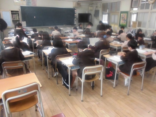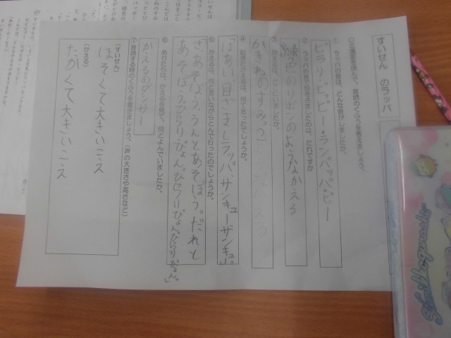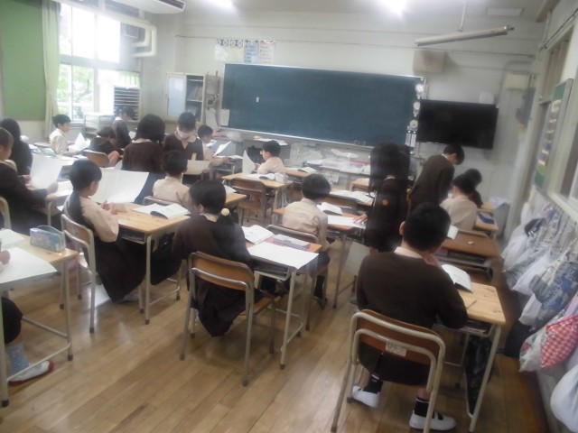 3年生は国語科「すいせんのラッパ」を学習していました。ワークシートの課題が終わった児童から、移動して近くのお友だちと答えを交流します。特に最後の課題「音読するときの工夫を書きましょう。」では、「高い声で読む。」「大きな声で読む。」などの意見を伝え合っていました。