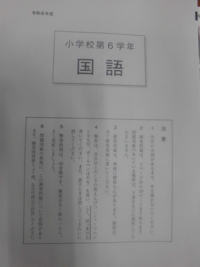 4月23日(木)全国学力・学習状況調査がありました。6年生が1時限目国語、2時限目算数を受けました。小学校6年間、積み重ねてきた力を存分に発揮できたでしょうか。後日オンラインによる児童質問調査も実施します。