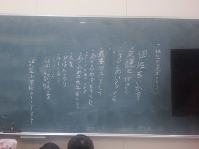 6年生は学年目標について話し合っていました。「下級生の見本となり」「個性を生かす」「友だちと仲良く」など、いくつもの意見が出されました。この中から、どの意見を取り上げるのか、内容が近い意見を一つの言葉にまとめるかなどを話し合って、最終的に学年目標が出来上がります。最高学年の学年目標、どんな目標が出来上がったでしょうか。