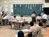 漢字を黒板に書いています。 正しい字か書き順は合っているか確かめ合っています。