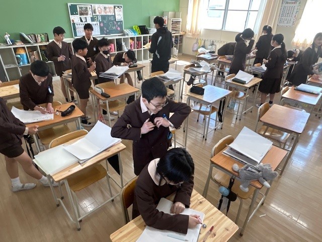 予行が終わり、最後の1時間となりました。卒業アルバムにコメントを書き合い、思い出...