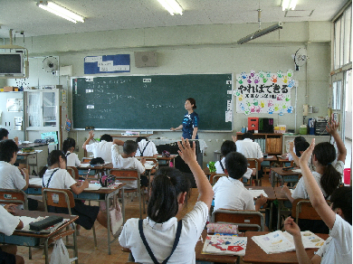 先生の問いかけに、積極的に手を挙げ発言する児童が多く見られ、