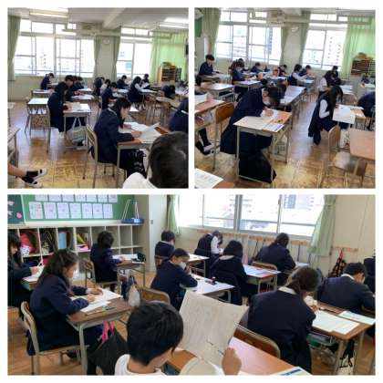 6年生は国語・算数の調査に全力で取り組んでいます。
