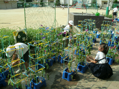 みんな、自分のあさがおをとても大切に可愛がって上手に育てることができています。