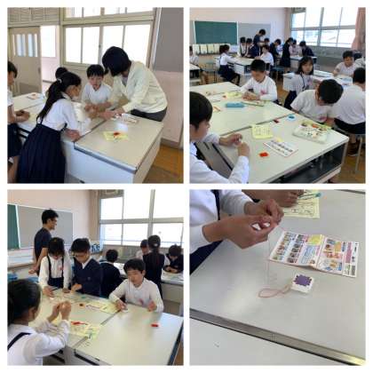 家庭科の玉結びにチャレンジしていました。