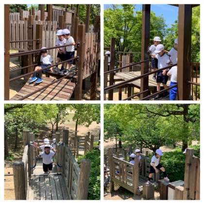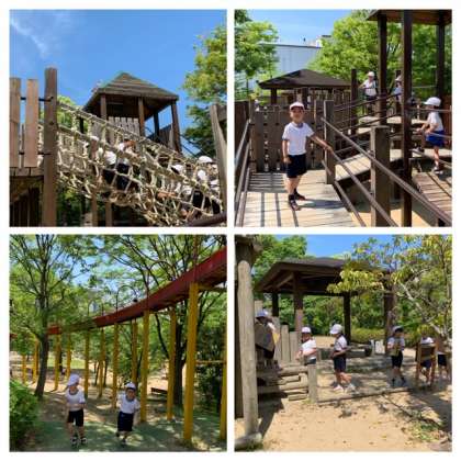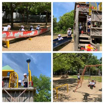 滑り台などの遊具があり、順番を守って楽しんでいました。