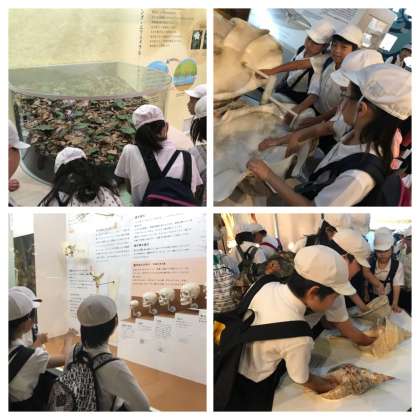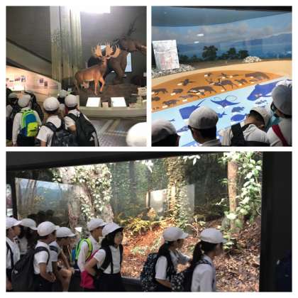 自然史博物館では、展示や資料を興味深く見学していました。